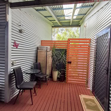 The separate building (approx. 5m x 5m) with a deck and split system air conditioning could be used as another self-contained studio (with the addition of bathroom and kitchenette), or a bedroom, therapy/retreat space, office, music studio, games room, etc.)