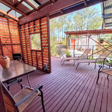 Enjoy the spacious deck right next door to your room, complete with table and chairs, sun lounges and BBQ. (Our weather is better than many places on the Tablelands, which has many micro-climates.) There is also an optional extra outdoor, 12 jet spa bath.